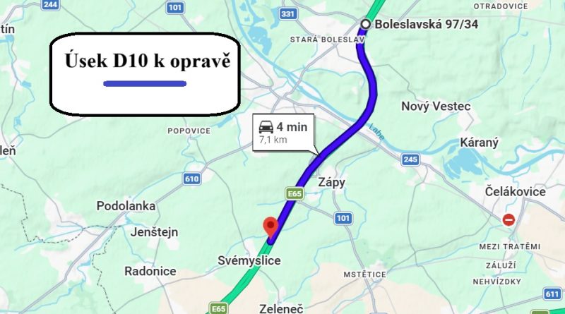 Na dálnici D10 začala na konci března oprava úseku mezi exitem Stará Boleslav a obcí Svémyslice ve směru na Prahu.